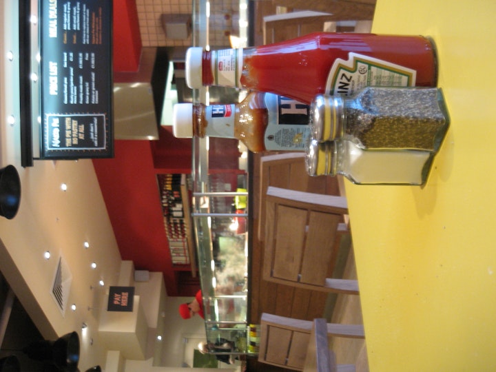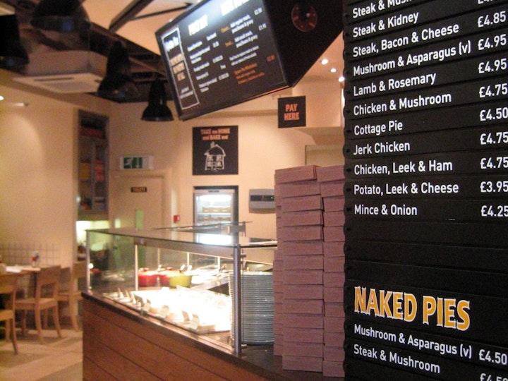 Suspended ceilings above the counter and the seating areas were introduced to create a cosy atmosphere. A darker colour and Angle-poise feature lights were then introduced within the central remaining ceiling void to create a more enclosed atmosphere. The fittings were specified to convey the sense of Britishness of the brand.